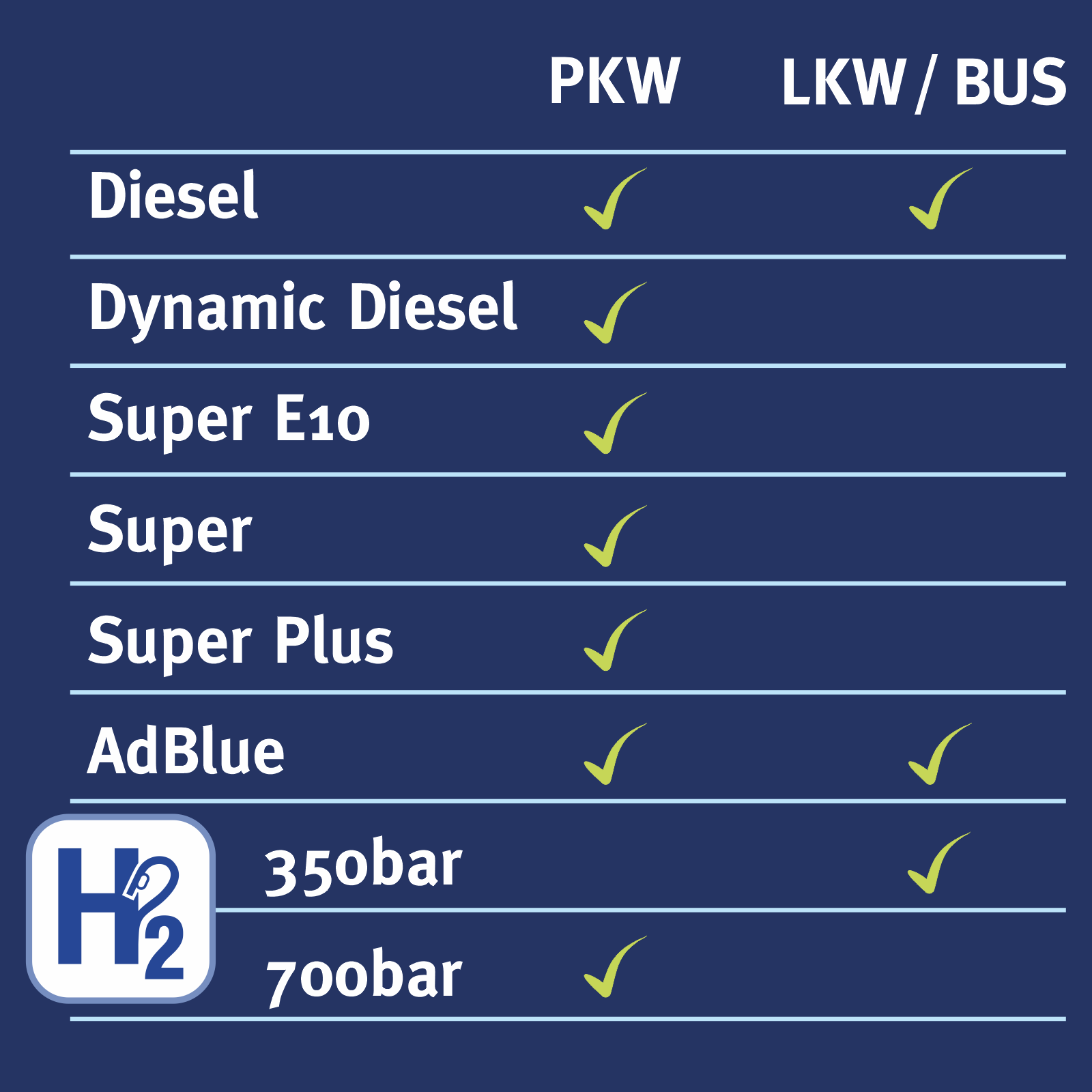 Wir haben auch konventionelle Kraftstoffe im Angebot - und Stromladesäulen in Vorbereitung!