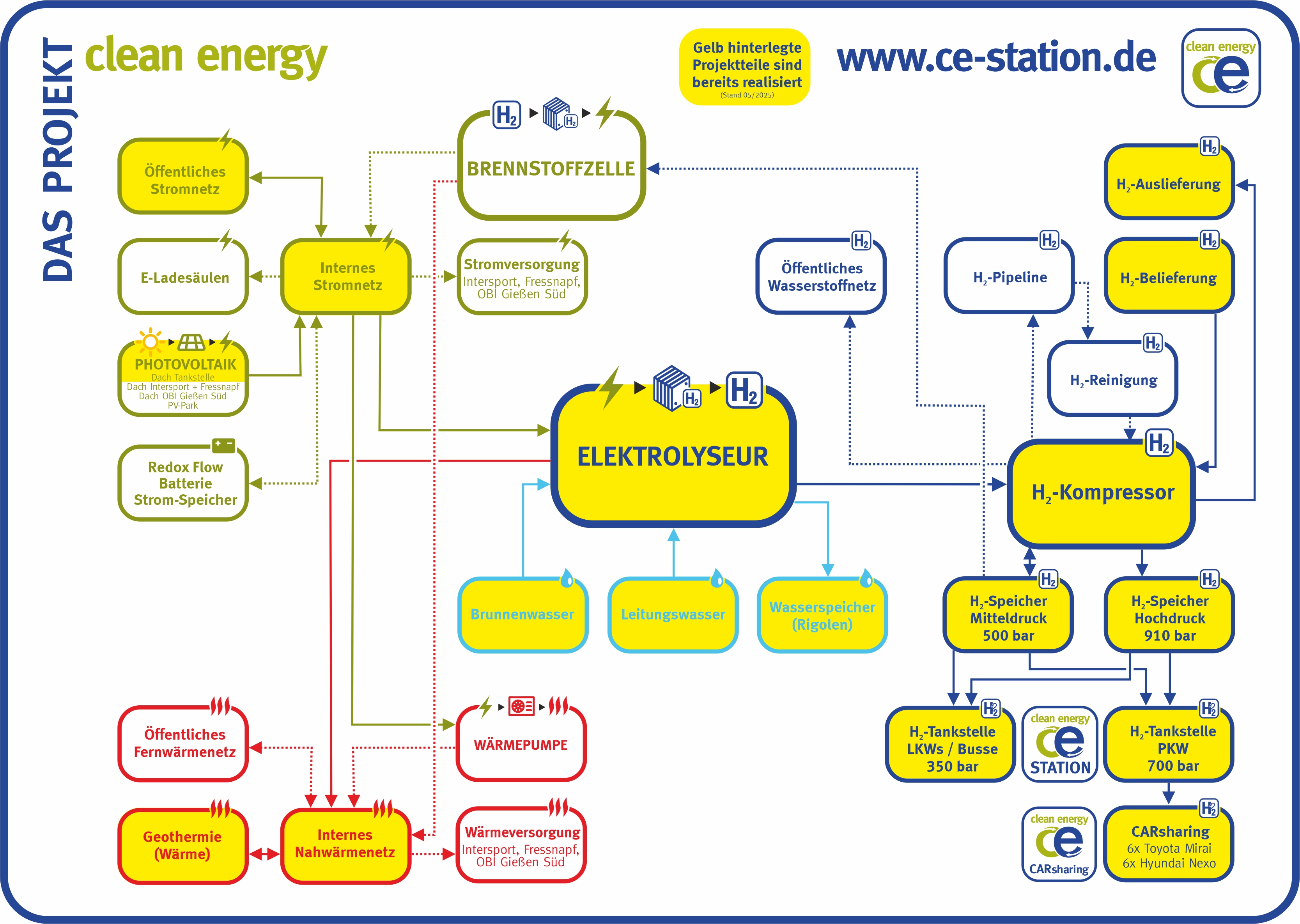 Auf den ersten Blick erkennt man im Schiffenberger Weg 123 in Gießen nicht viel mehr als eine normale Selbstbedienungs-Tankstelle. Dahinter verbirgt sich ein ausgeklügeltes, hochkomplexes Projekt, in dem alle modernen Techniken rund um Wasserstoff, Strom und Wärme ineinander greifen.